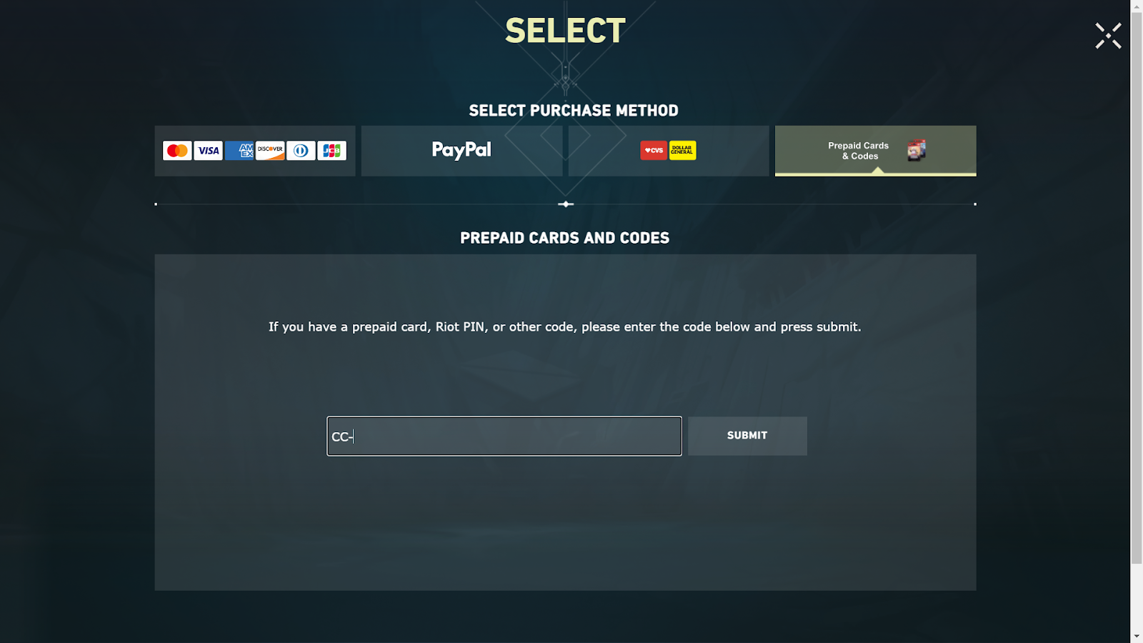 - حدد البطاقات مسبقة الدفع والرموز (Prepaid Cards & Codes) وأدخل الرمز الخاص بك تمامًا كما يظهر.