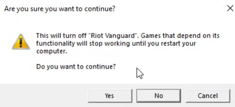 Cela vous permettra d’exécuter plusieurs programme ayant pu être désignés comme menace potentielle par Vanguard. Pour réactiver Vanguard, vous devrez redémarrer votre ordinateur.