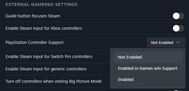 - 如果你使用的是PlayStation®控制器,請在下拉選單中選擇「未啟用」。