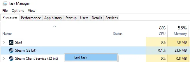 3 - 確認Steam和相關處理程序已在工作管理員中關閉